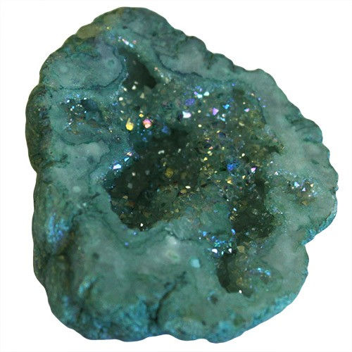 Geodes are known as Goddess Symbols as each geode holds a special energy gifted by Mother Earth that is released slowly for the user. The cave-like shape with internal crystals of quartz geodes is believed to amplify and diffuse this energy. The quartz geode specimen has been infused with precious metals to produce the colours of each stone.